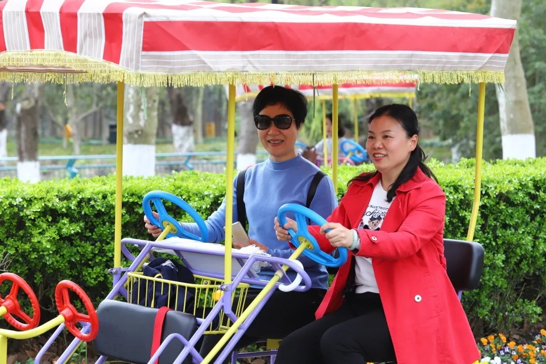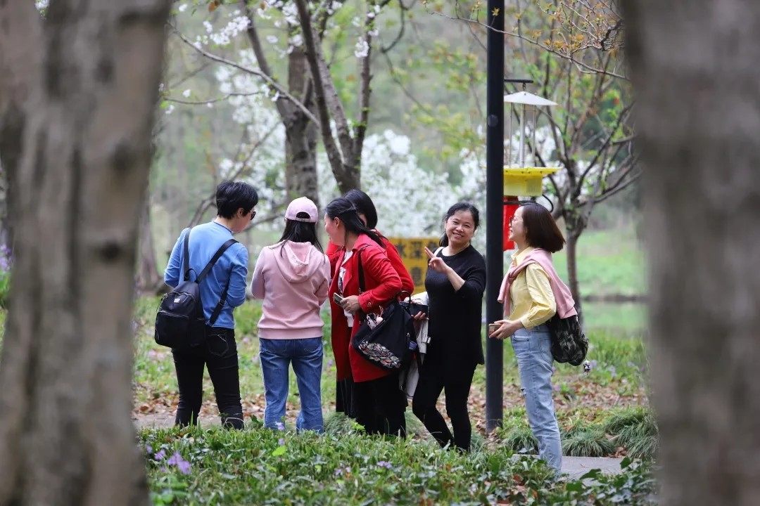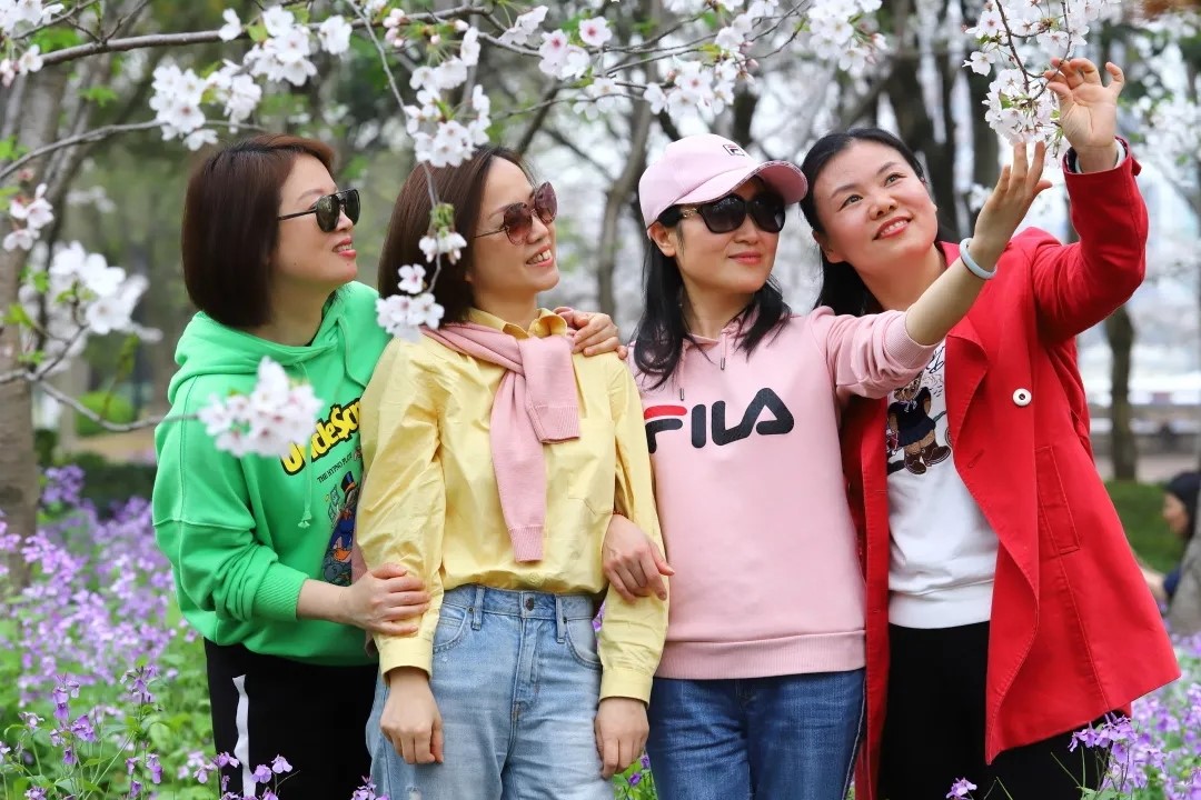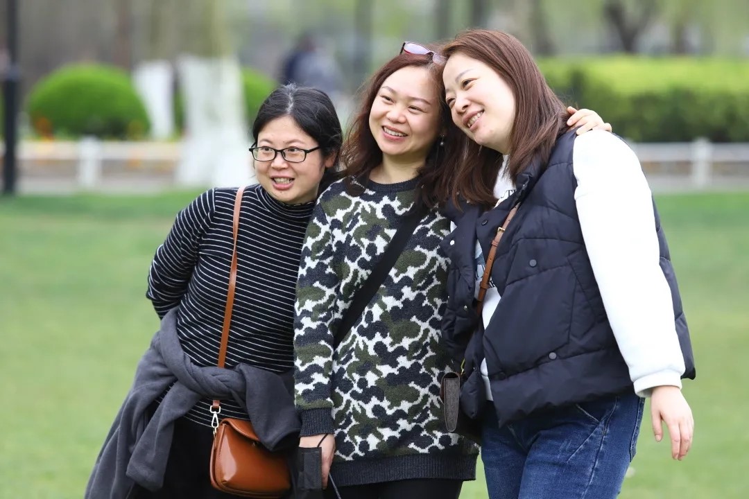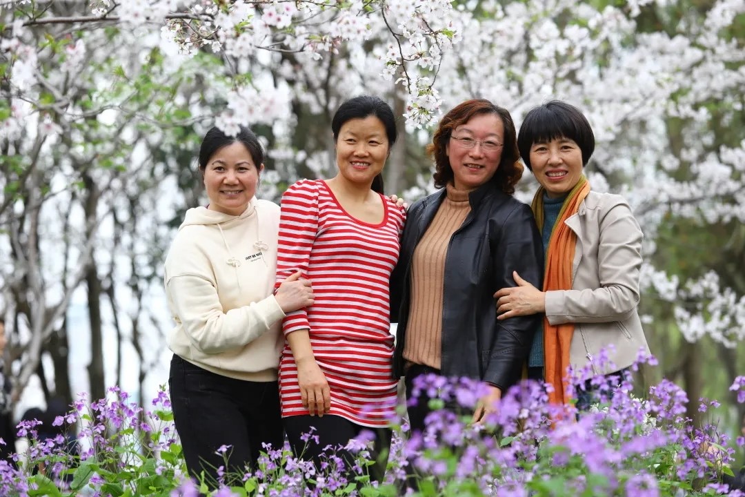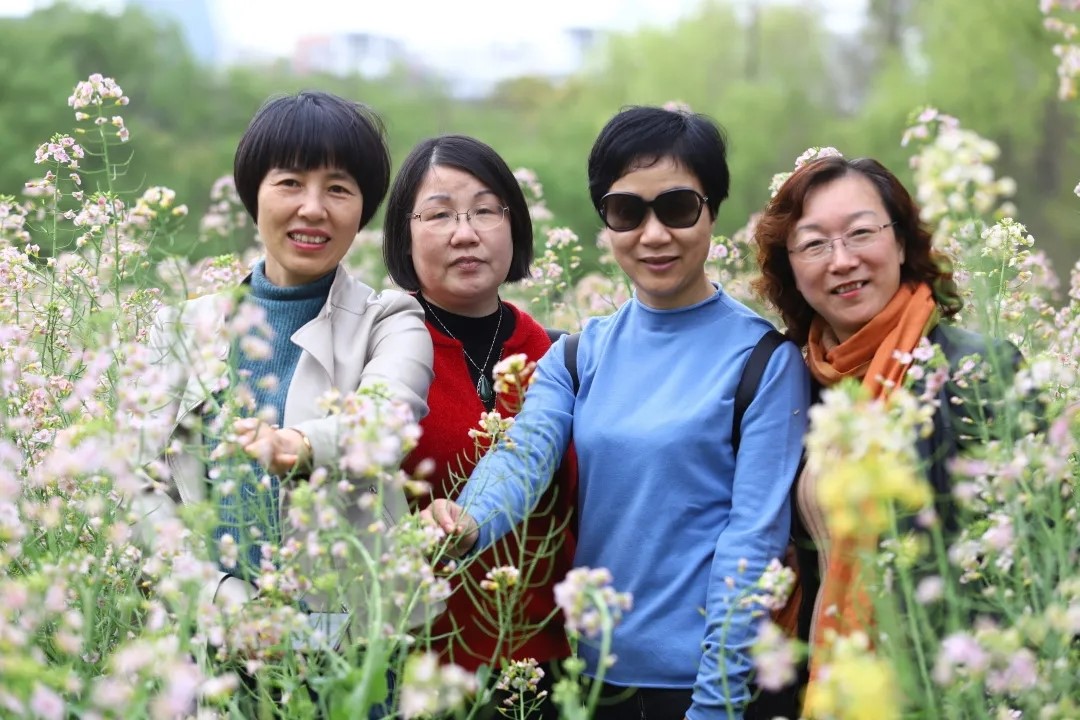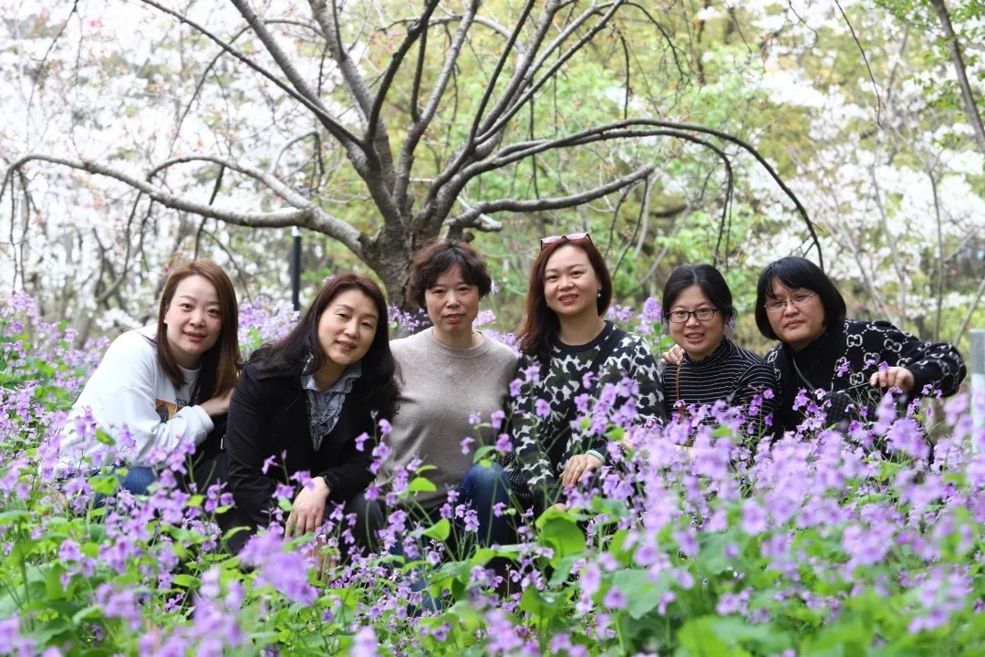我们的姐妹们在花丛中穿梭,大家忍不住拿起手机或自拍、或结伴留下一张张美丽的倩影。