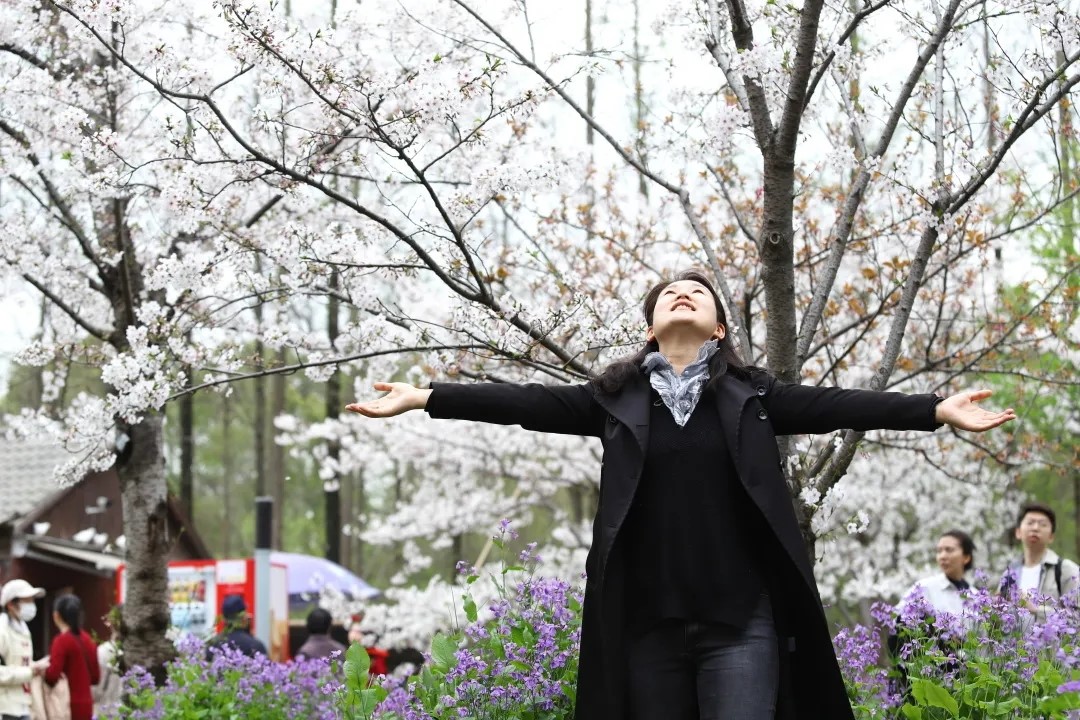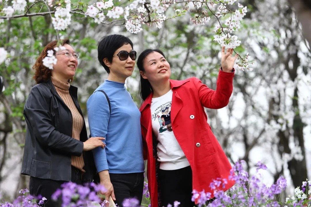 下午,大家来到浦东的世纪公园,在欢呼中大家第一次见识到五彩油菜花、昔日金黄的油菜花摇身一变,成了五彩斑斓的样子。或金、或粉、或红、或紫、像展开的一幅幅巨大五彩绒地毯展现在大家眼前,春风吹过,花浪滚滚,花香飘然而至。令人心旷神怡。继续往里走,河对面一团团、一簇簇的樱花盛开,红中带粉、粉中带白,当真是摇弋多姿,美如画。