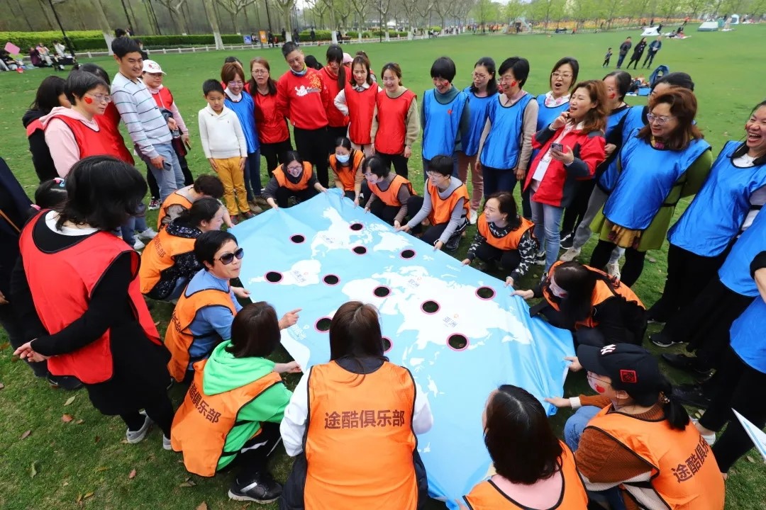 接着进行团建活动,以十五人为一组,分成了三个小组。第一个是极速60秒和环游世界球两个竞赛。第一个主要强化个人超越自我的坚定信念,达到组织及个人的和谐。最终黄队力压群芳,完美胜出。第二个活动是环游世界球,要求每个队的成员必须双手拉世界球地图边缘,但不能接触圆球,圆球必须经过七大洲四大洋,圆球掉落需重新开始。它体现团队观念的重要性,营造协同合作的组织氛围,增强组织的凝聚力。每个队都有自己的一套规划方法,有的先规划路线,有的注重掌握技巧性,放低地球边缘纸。比赛过程中,每个队有一位掌舵指挥,随着圆球的起落,险象环生、跌宕起伏,只听见一片片欢笑声、尖叫声此起彼落。最后,蓝队以最稳定的速度和平衡走完全程,摘得桂冠。