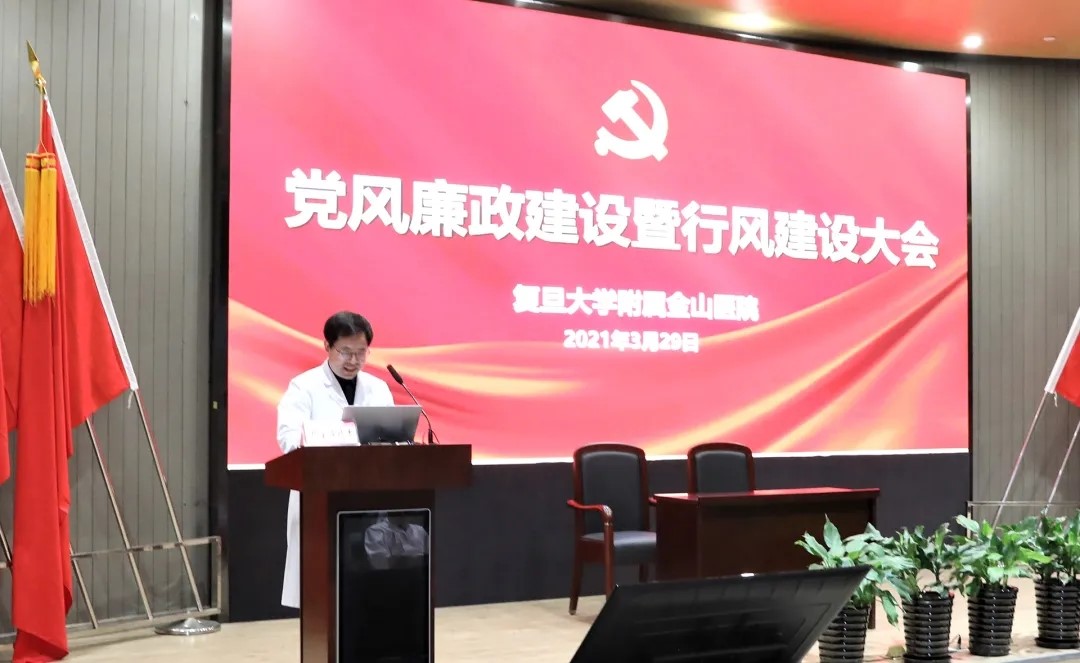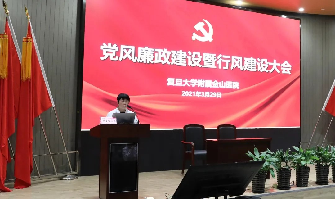 3月29日,在科教楼学术报告厅召开2021年金山医院党风廉政建设暨行风建设大会。会议由党委书记陈刚主持,领导班子及全体中层干部、敏感岗位200余人参会。
