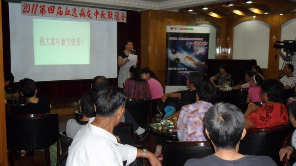中秋节前夕,第四届血透病友联谊会如期举行,对病友们关心的血液灌流、血液透析滤过和血液透析等透析方式各自的特点、适用范围、收费情况以及可能产生的不良反应、抗凝药物的调整、自体动静脉内瘘、永久性导管、移植血管、临时性中心静脉导管等血管通路的护理、止血和锻炼方法等,医务人员做了详细的宣讲。