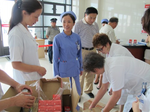 院工会顾勇主席、纪委石卫红书记为急诊工作人员送上绿豆汤、冰红茶
