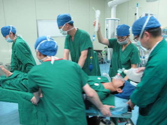 消防知识常抓不懈 安全演练警钟长鸣 ----记手术麻醉科2012年度消防演练 在搬入新大楼半年之际,为了进一步加强手术麻醉科的安全工作,增强每位员工的消防安全意识,本着坚持“安全第一,预防为主”的方针和“以人为本”的思想,提高救援防范能力,做到在发生火灾时,能临危不乱,有序、迅速地按照消防逃生路线安全疏散及安全转运麻醉中的患者,确保生命安全,麻醉科全体员工在科主任和护士长的带领下于2012年8月15日下午16:00在手术室开展了一次安全疏散消防演练。 在正式演练前,先邀请保卫科沈昌全老师给每位员工做了一堂生动的消防安全课,从消防基础知识到消防器材的使用,从手术室内火灾的特点到手术室火灾应急处理和疏散预案,沈老师均娓娓道来,在座的员工也聚精会神地听,不懂之处当场向沈老师请教。接着,沈老师给大家演示了干粉灭火器如何使用,消火栓的橱窗如何打开,消火栓内部的物品如何使用等,就在大家的互动中,消防安全知识牢牢地记在了每位员工的脑海里。 接着,便是紧张而又刺激的实战演练开始了。在1号手术室,现场模拟一台全麻的普外科手术正在紧张地进行中,突然外面传来了着火的呼喊声!这时,两位普外科医生、两位护士、两位麻醉科医生和一位由实习生扮演的患者在当值的主麻医生的指挥下,拉在了消防实战演练的序幕。所有的照明灯全部熄灭,紧接着各种仪器设备发出了急促的报警声,墙上的应急照明灯自动打开,门外已是“浓烟密布”。面对此景,1号手术室内的医护人员并没有陷入恐慌:当值的主麻医生果断地将患者由麻醉机控制呼吸转为人工气囊维持呼吸,并对火势进行简单的评估后决定暂停手术马上撤离,与此同时,巡回护士立即拨打医院总机和119报警求助,两位普外科医生沉着冷静地用无菌巾对患者的切口进行覆盖和保护,器械护士脱开所有的器械,辅麻医生手持补液,在巡回护士手提应急灯的引导下,大家齐心协力推着手术床沿着最近的消防通道安全撤离。紧接着又模拟了一个不同地方的着火点,在使用转运车的情况下把病人从另一通道安全撤离。整个演练从报警到撤离用了2分钟的时间,演练非常成功。 在演练最后,参与者和观摩者从各自不同的角度对演练过程中的每个环节进行了讨论,并提出了各自想法和建议,例如“如何在转运过程中对患者进行更好的保护”,“重症患者如何行安全转运”,“出手术室后的转运去向”等。在讨论结束后,主任和护士长汇总了大家的建议,进一步完善了已有的麻醉手术科的消防应急处理和安全撤离预案,如搬运全麻患者的细节要点及转送路线等。 通过这次消防演练活动,提高了全科医护人员对突发事件的防范意识,把抽象的安全演练变成具体的实战演习,锻炼了全科对处理突发事件的应变能力,同时也升华了突发事件中的团队凝聚力,为创建“平安和谐”科室奠定了坚实的基础。 麻醉科:陈春欢