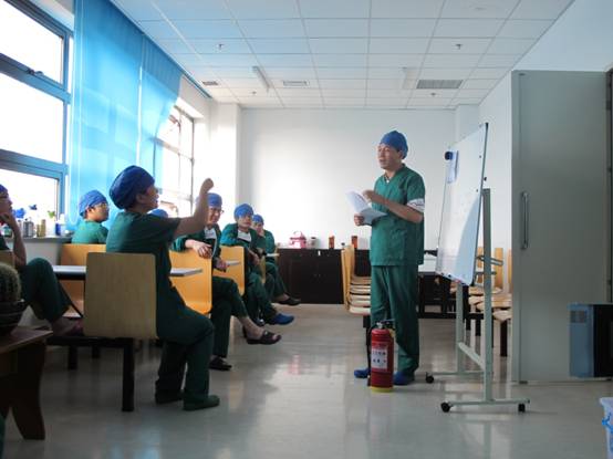 保卫科沈昌全为麻醉科员工讲解消防器材的使用方法