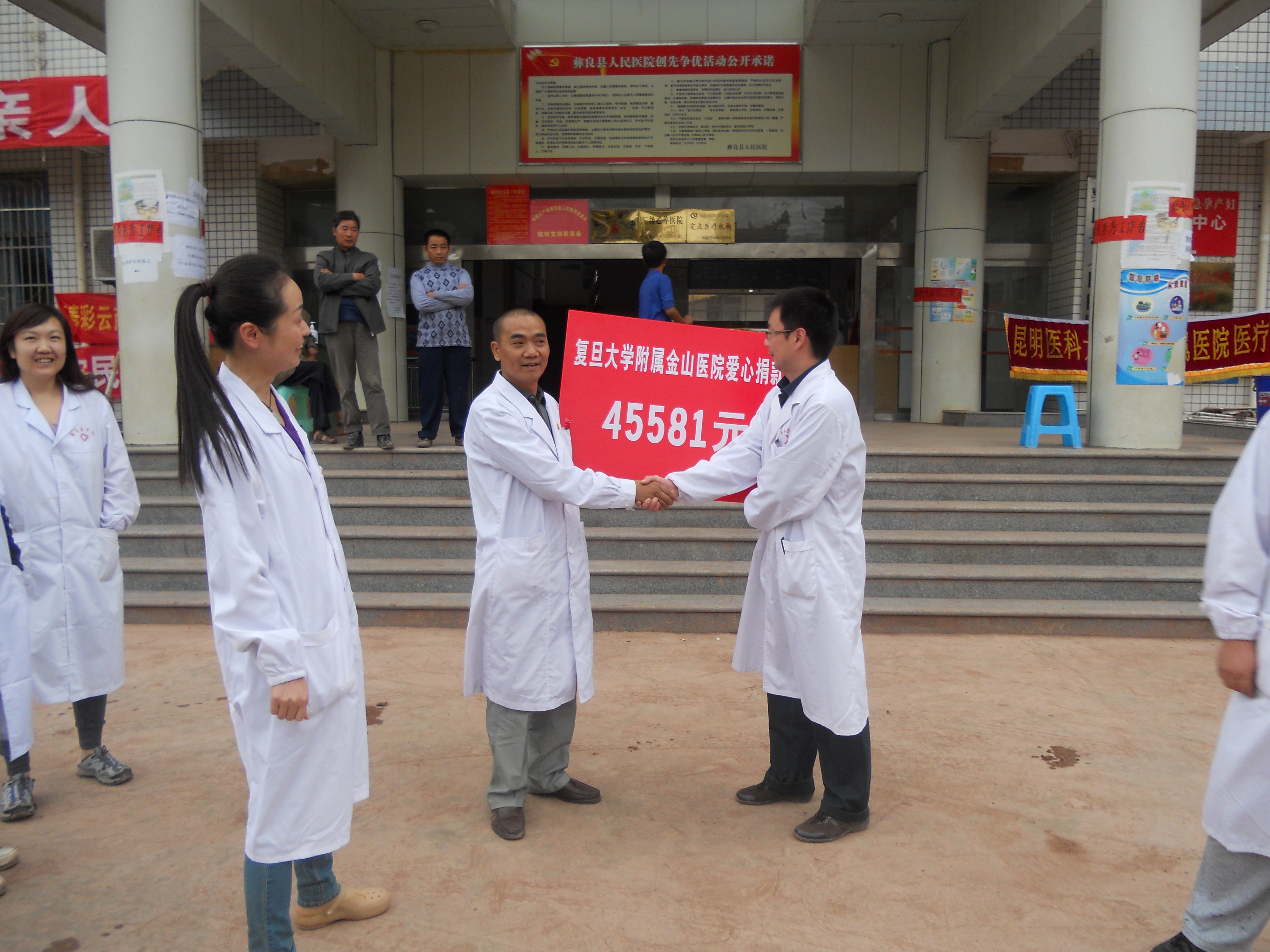 9月21日 星期五 今天在病房巡查中发现各科室间沟通断层还是比较明显,发现问题时只限于处理自己能解决的问题,可能会影响了医院的整体发展。鉴于此,医疗队及时与院领导和各科主任沟通,进一步规范了取样要求、有限的检测资源的合理应用及新项目的开发等,养成规范的就诊程序,以确保医院的可持续发展。 自9.7地震与9.11洪灾发生以来,爱心在彝良汇聚。我们金山医院党委在第一时间发起了爱心募捐,爱心募捐直接用于受灾严重的彝良县人民医院的重建。涓滴之水成海洋,颗颗爱心变希望。当云南同胞遭受重大灾害时,虽然远隔万里,我们的上海同胞用自己的爱心去抚慰灾民受伤的心灵,用自己的实际行动去共同描绘美好的家园蓝图。彝良县人民医院叶院长对于我们金山医院的爱心捐款和金山医院长期的援建工作表示诚挚的感谢。 我相信我们的一份援助,将给灾区人民十分的力量;我们的十分帮助将给灾区人民百倍的信心。