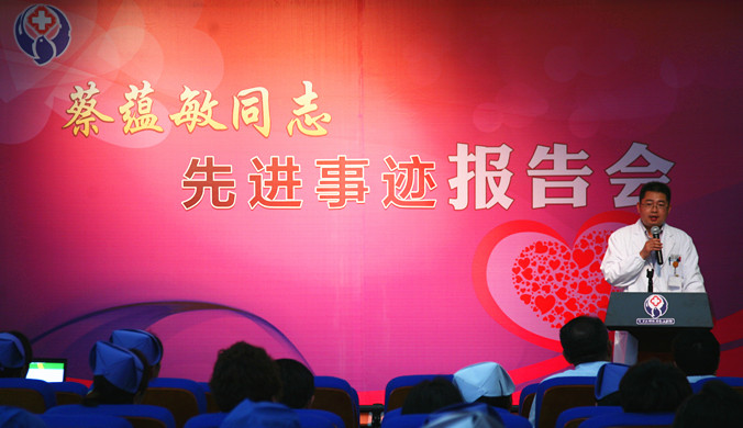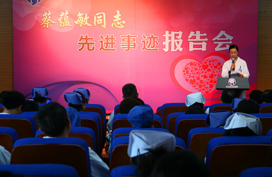 为弘扬先进,学习先进,更好地推动医院文明单位建设,推动医教研全面发展,实现医院 “十二五”的发展目标,我院党委于本月8日在核化楼阶梯教举行“蔡蕴敏先进事迹报告会”。大会由党委书记陈刚主持,院领导班子及中层干部、职工代表120余人参加会议。 首先,纪委书记石卫红宣读了《关于在全院开展学习蔡蕴敏同志先进事迹活动的通知》,阐述了学习活动的意义和学习活动在时间节点上的具体安排,并提出学习活动的要求。随后,门诊换药室护士夏珍美、医生代表黄文海、病人家属侯某分别从自身角度,通过一个个具体的病例演绎了蔡蕴敏同志对工作刻苦钻研、对患者无私奉献的仁术仁、蔡蕴敏则谈了自己对于本职工作的态度与认识、党委书记陈刚肯定了蔡蕴敏二十余年为患者服务、不求回报、无私付出精神,并要求大家学习蔡蕴敏这样身边的典范,热爱本职工作,强化服务意识,提高服务技能,拥有施技求臻、进取协助、和蔼细心、仁爱无私的大爱胸怀。 聆听了事迹报告会,与会者感动之余深受启发,对如何更好地做好本职工作有了全新的认识,尤其在细节、关爱与提高专业技能方面,对于职业规划不无裨益。(顾佳怡) 体会与感悟 曾义斌——蔡蕴敏的精神激励了医院所有的医护人员,我们要把爱心、热心、耐心、细心、关心和责任心投入到工作中,切实为病人做实事、为社会做好事,体现医疗行业的救死扶伤的仁爱精神。 夏珍美——通过学习蔡蕴敏的事迹,我体会到:只有勤于专研、医术精湛、恪尽职守、乐于奉献的医者才能担当得起肩上的责任。 罗勤——以实际行动学习蔡蕴敏,我要求自己要做到“三爱”:一是爱医院,我靠医院生存,医院靠我发展,我会像爱自己的家一样爱我们的医院,时时处处维护医院形象、维护医院利益。二是爱岗位,岗位没有大小,不分贵贱,我会把岗位当成职业,把职业当作事业,立足岗位做贡献,为医院的发展努力发挥聪明才智。三是爱患者,患者是我们的衣食父母,患者是最需要我们尊重和关爱的人。 石晶——蔡蕴敏是我们身边的人物,在她身上我们感受到的不仅仅是崇高的职业精神,而是实实在在的的认识感觉,感受一种医务人员救死扶伤,对职业的感情。我们要向她那样,从小事做起,在平凡的岗位上坚持,刻苦钻研,克服纷繁的诱惑,学会修心养性,坚持自己的信念。