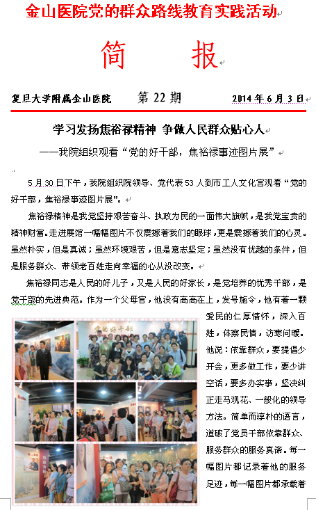 金山医院开展党的群众路线教育实践活动简报(二十二)